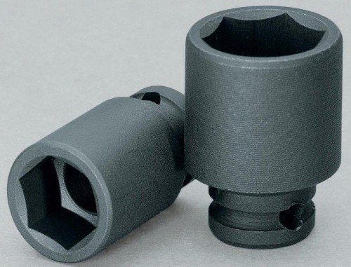 Soquete especial para trabalhar com máquinas pneumáticas e elétricas. Com alojamento para pino e anel de segurança. Acabamento fosfatizado. Encaixe: a 19,05 mm (3/4”).