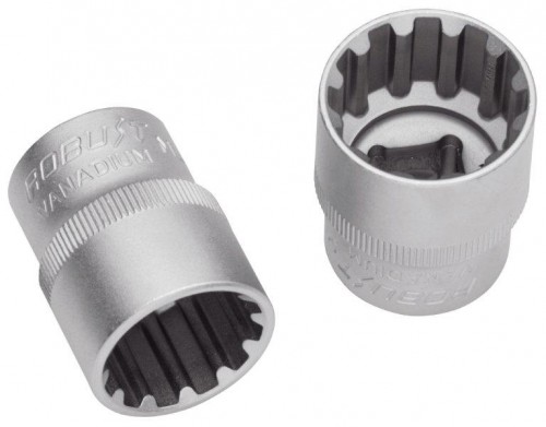 Aço cromo-vanadium. Niquelado e cromado. Encaixe: a 12,7 mm (1/2”).