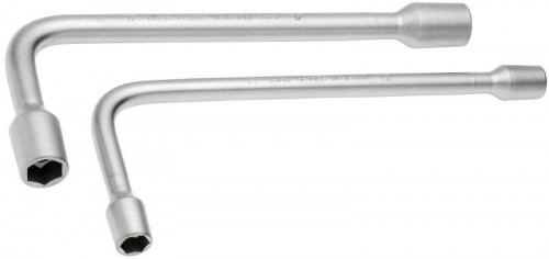 Aço Gedore-Vanadium. Niquelado e cromado. Modelo longo, cabeças de perfil cônico com paredes finas. Chave com sextavado interno. Os dois lados sextavados de mesma medida.