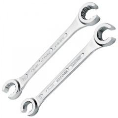 Aço Gedore-Vanadium. Niquelado e cromado. Para uso em tubulações de sistemas de refrigeração, hidráulico e pneumático. Dois lados Unit Drive ou sextavado (aberto) com medidas diferentes. O ângulo de inclinação em relação ao corpo é de 15º ou 30º, de acordo com o modelo.