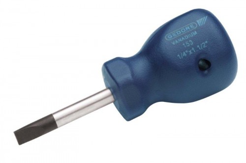 Aço Gedore-Vanadium. Haste niquelada e cromada, cabo em polipropileno azul, ponta