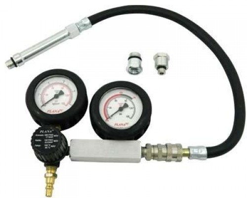 Analisa perda de ar comprimido no cilindro, diagnosticando sede de válvulas de admissão e escapamento de bloco, juntas e cabeçote, folga em pistão, anéis e cilindro.