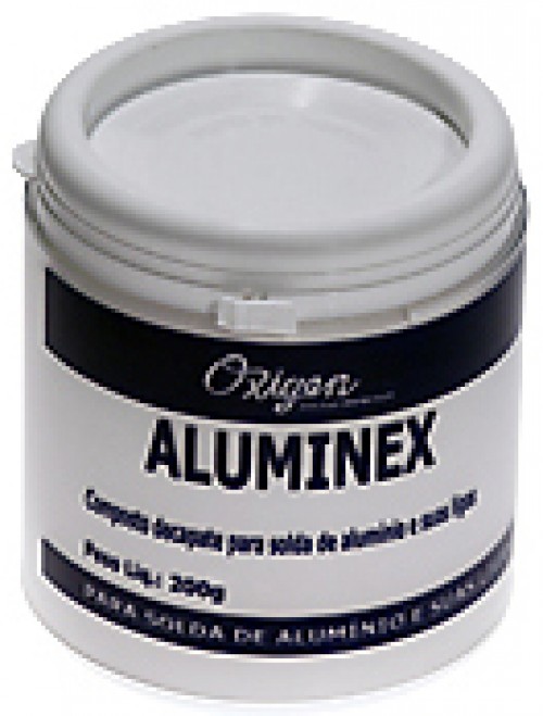 Fluxo em pó a base de cloretos para soldagem e brasagem oxi-gás (acetileno ou GLP) de alumínio das séries 1xxx, 3xxx e 6xxx. A fórmula do ALUMINEX contém elementos que removem efetivamente a película de óxido de alumínio e propiciam ótima fluidez do metal