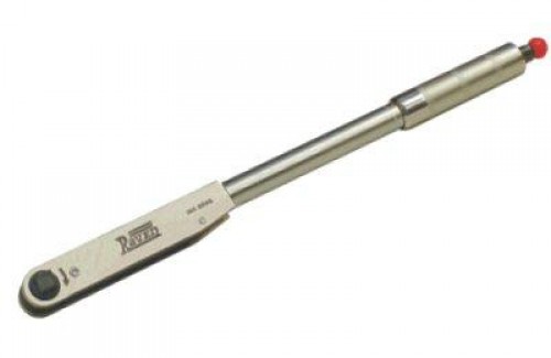Torquímetro de estalo com encaixe de 1/2” e escala com 4 unidades diferentes para ajuste do torque: de 3 a 14 Kgf.m(quilograma / força x metro); de 25 a 135 Nm(Newton x metro); de 20 a 100 lb.ft(libra x pé); de 200 a 1200 lb.in(libra x polegada); Comprimento (mm): 538