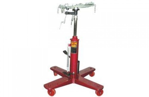 Macaco hidráulico telescópico, para caixa de câmbio de automóveis e utilitários leves (carga máxima 250Kg) , com rodas em poliuretano. Utilização com o veículo suspenso no elevador.