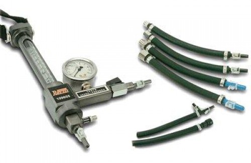 Conjunto para teste de pressão e vazão, da linha de combustível, de veículos movidos a álcool ou gasolina, com injeção eletrônica.