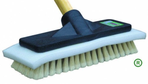 Tamanho 30 x 9 x 6 cm. Cabo 28mm x 1,50 m ou 2 metros. Cerdas de P.E.T. 0,2 mm plumadas e com espuma para reter shampoo.(pat- req).