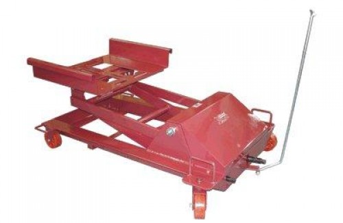 Macaco mecânico universal para caixa de câmbio de caminhões médios e pesados. Bandeja com laterais móveis. Rodízios em poliuretano. Capacidade máxima para 800Kg. Dimensões: comprimento= 1300mm, altura mínima= 180mm, altura máxima= 720mm, bandeja= 500mm x 500mm.