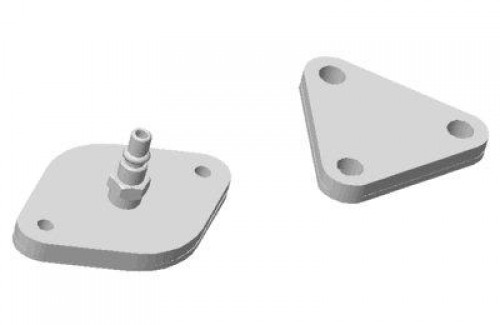 Conjunto com dois adaptadores para teste da válvula EGR do motor International NGD 9.3. Utilizada nos caminhões VW Constellation 19.370 4x2, 25.370, 31.370 e 31.370 6x4.