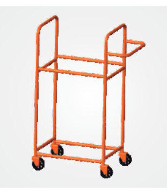 Carrinho metálico para transporte e armazenagem de pneus de automóveis. Comporta simultaneamente 4 pneus com até 245 mm de largura e 600 mm de diâmetro. Quatro opções de cores (azul, cinza, laranja e vermelho).