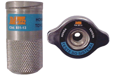 Adaptador avulso dos conjuntos 109651/109671 para teste do sistema e da tampa de veículos Honda Civic nacional (98 em diante) e Toyota Corolla nacional (99 em diante).