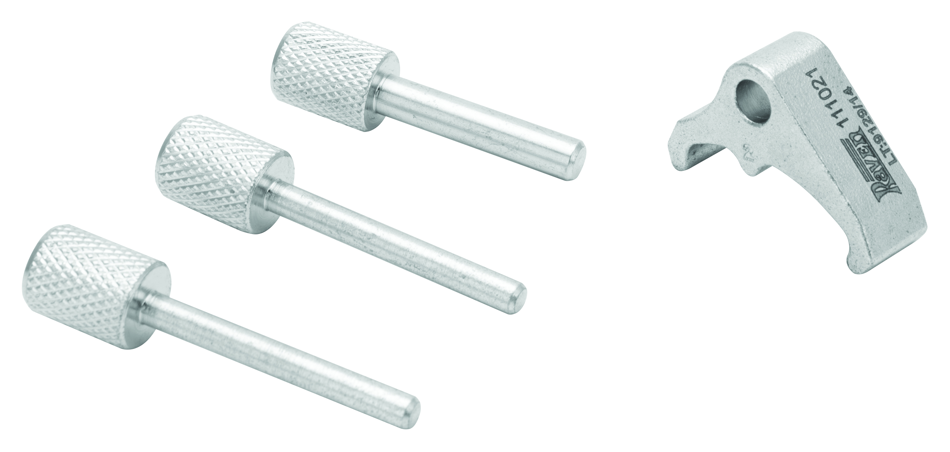 Conjunto com quatro ferramentas para sincronismo dos motores VW 2.0 16V diesel turbo (122/140 cv) e biturbo (163/180 cv) aplicados na Amarok.