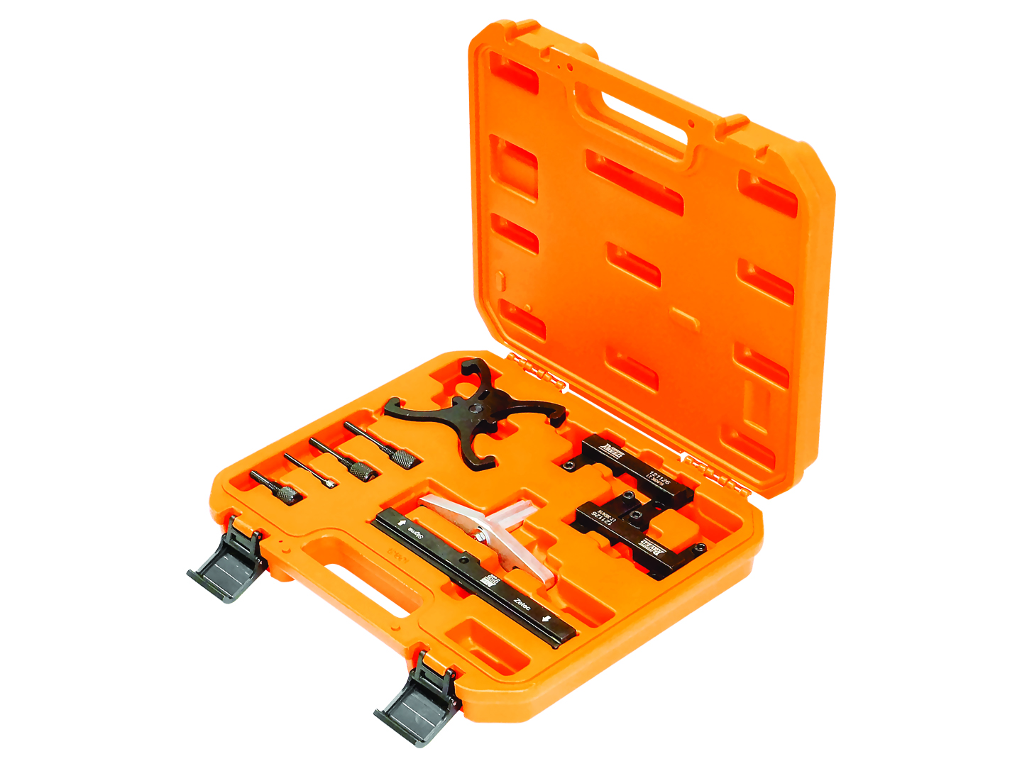 Conjunto de ferramentas para sincronismo dos motores Ford 1.0 12V (3cil.) TiVCT, 1.0 12V (3cil.) EcoBoost, Sigma 1.5/1.6 16V (sem variador de fase), Sigma 1.6 16V TiVCT (com variador de fase), Duratec 2.0/2.3/2.5 16V e Zetec 1.4/1.8/2.0 16V. Composto pelas ferramentas/conjuntos 101013, 121124, 121125 e 121126 (total de 9 peças) em uma maleta plástica especial. Principais aplicações: Ka 1.0 12V, New Fiesta 1.0 12V e 1.5/1.6 16V, Ecosport 1.6/2.0 16v (03-16) e Focus 1.6/1.8/2.0 16V (01-15).
