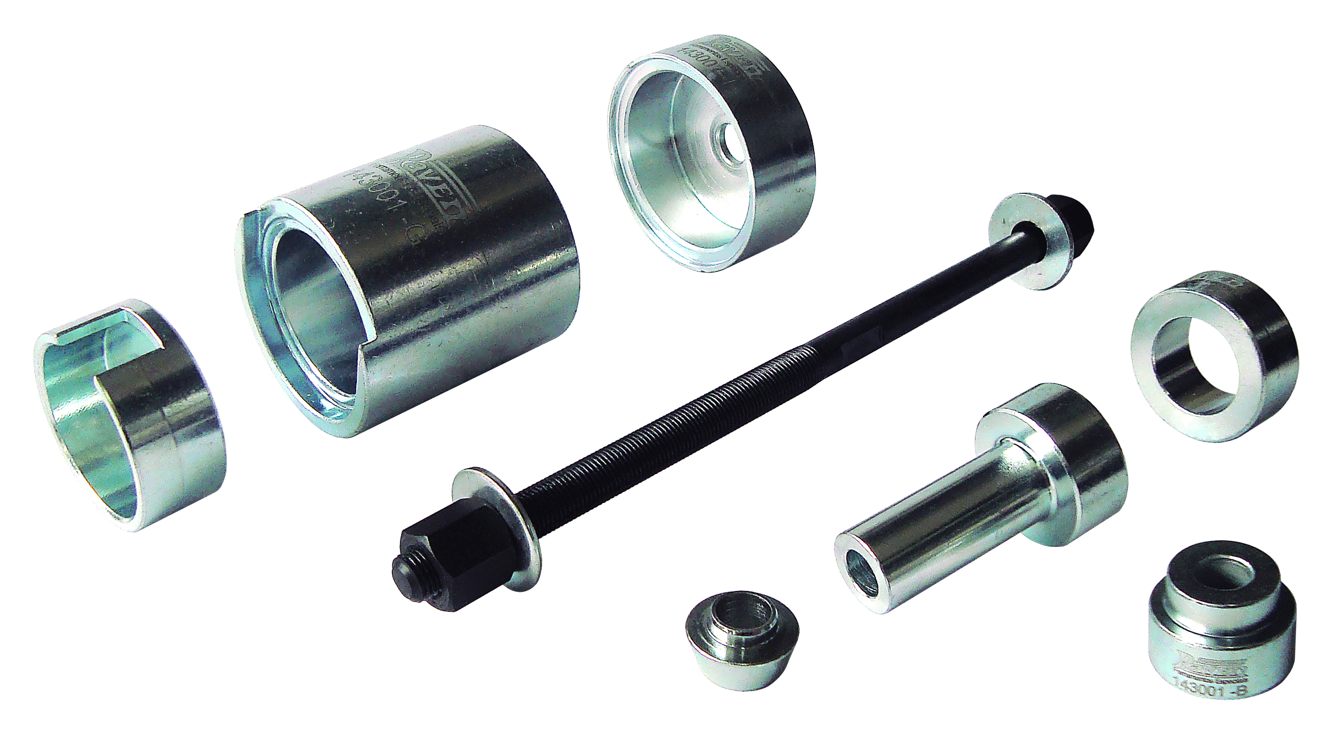 Extrator e instalador da bucha (com pino) das bandejas dianteiras dos veículos Fiat Ducato, Citroën Jumper e Peugeot Boxer.