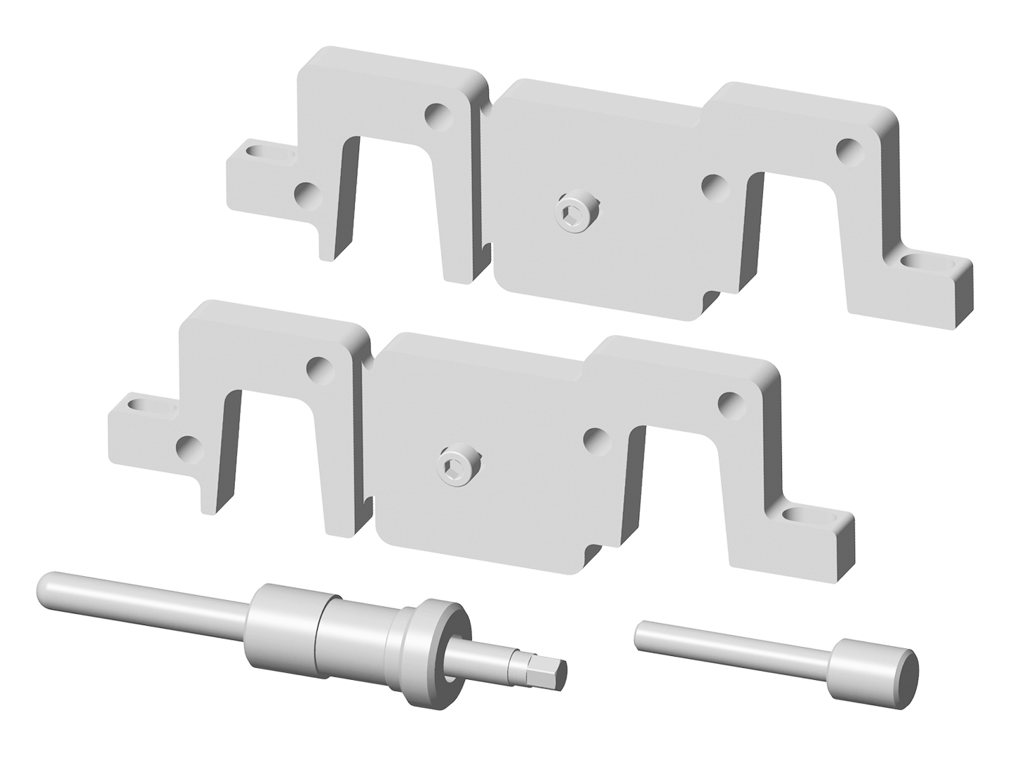 Conjunto com 4 ferramentas para sincronismo dos motores Porsche 3.0 / 3.6 24V V6 e 4.8 32V V8, todos com injeção direta (“DFI”) e aplicados em veículos Porsche desde 2008. Vide aplicação no catálogo Automóveis 2017/18.