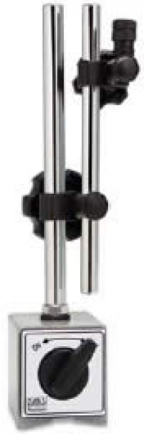 Base Magnética para Relógios Comparadores e Apalpadores. Chave Liga/Desliga; Superfície em V para fixação em peças cilíndricas; Prende o relógio tanto pela orelha como pelo canhão de fixação; Capacidade de 60Kg.; Raio de Alcance 150mm.