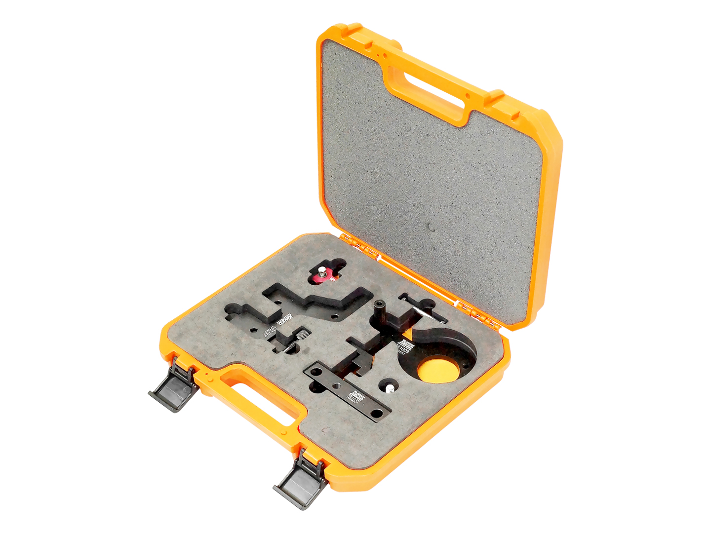 Conjunto de ferramentas para sincronismo dos motores Ford Duratec 2.0 16V com injeção direta Direct Flex (aspirado) e EcoBoost (turbo). Composto pelas ferramentas/conjuntos 121128, 121129, 121130 e 241003 em uma maleta plástica especial. Aplicações (motor 2.0 16V Direct Flex): Ford Focus 3ª ger. (13-17), Focus Sedan 3ª ger. (13-17) e EcoSport (17). Aplicações (motor 2.0 16V EcoBoost): Ford Fusion (13-17), Jaguar (cód. motor 204PT) XE (16), XF (13-16), XJ (13-14), Land Rover (cód. motor 204PT) Discovery Sport Si4 (16-17), Freelander 2 Si4 (13-15), Range Rover Evoque Si4 (12-17), Range Rover Evoque Convertible Si4 (16-17) e Volvo (cód. motor B4204T6 ou B4204T7) S60 T5 (11-14), V60 T5 (12-14), XC60 T5 (11-14).
