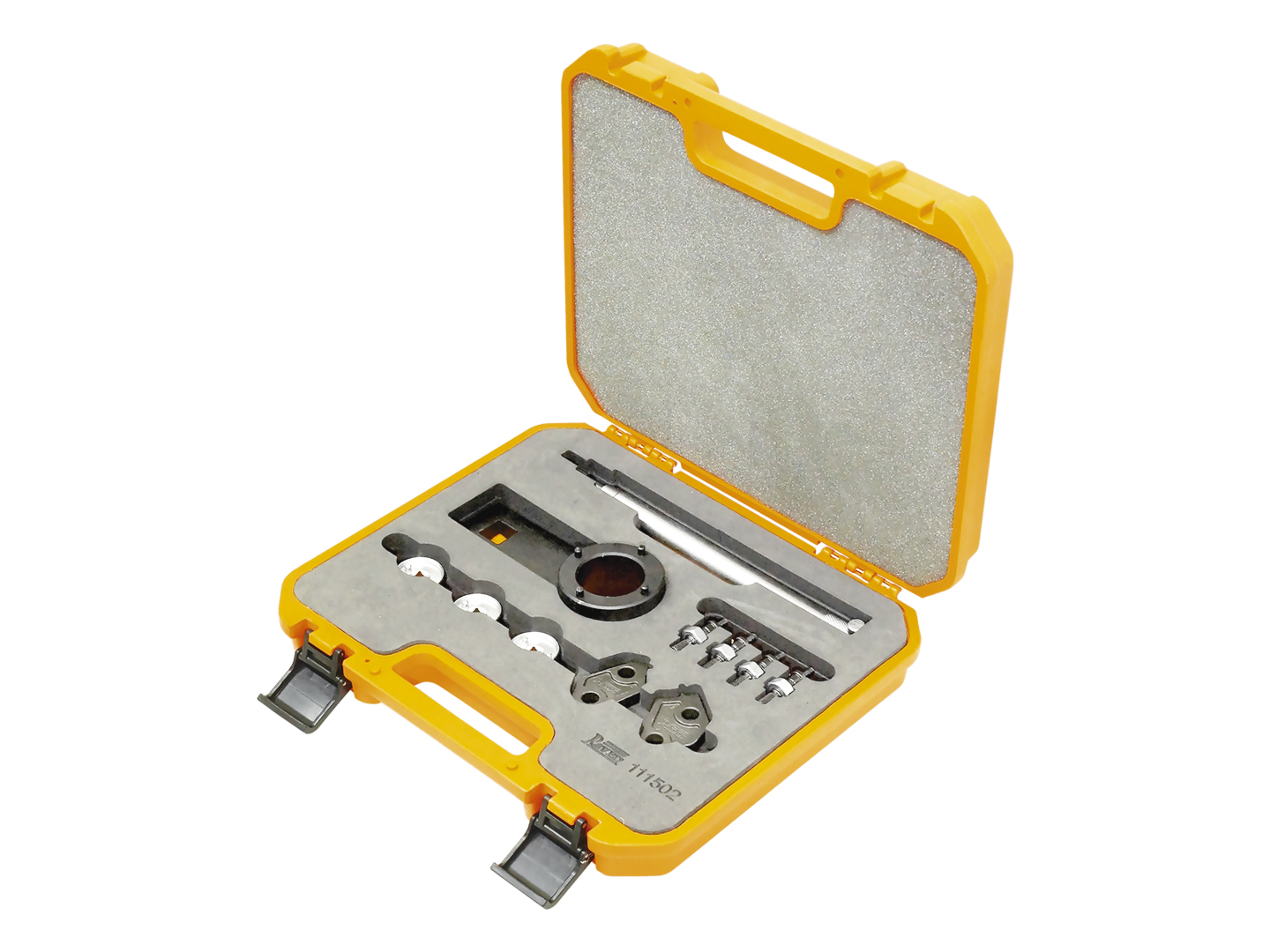 Conjunto de ferramentas para sincronismo dos motores VW/Audi EA888 2.0 16V TSI, aplicados em veículos VW desde 2009 e 1.8/2.0 16V TFSI, aplicado em veículos Audi desde 2009. Composto pelas ferramentas/conjuntos 111037, 111038, 111042 e 141358 em uma maleta plástica especial. Principais aplicações (motores 2.0 16V Turbo "TSI"): Jetta (12-16), Fusca (13-16), Golf Mk7 GTI (14-16), Passat / Passat Variant (11-15), Tiguan (09-16). Principais aplicações (motores 1.8/2.0 16V Turbo "TFSI"): A3 (10-16), A3 Sportback / A3 Sedan (15-16), A4 (09-16), Q3 (13-16), Q5 (09-16), TT (10-16).