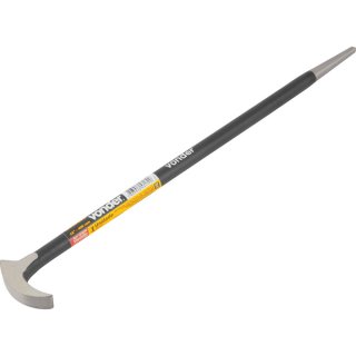 Possui acabamento oxidado preto, proporcionando resistência contra a corrosão, e ponta redonda cônica, que facilita o encaixe em locais apertados nos trabalhos de movimentação de caixas e peças pesadas. Conta também com ponta tipo unha, facilitando a alavancagem de caixas e peças pesadas.