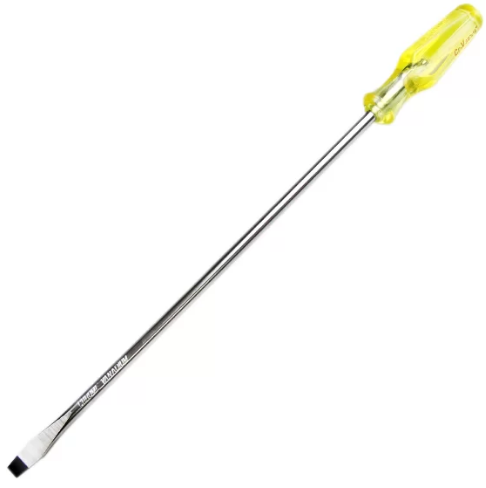 • Chave fenda simples • Medida: 3/8" x 14" • Formato trilobular para maior ergonomia • Projetada para trabalhos pesados • Cabo em PVC resistente a níveis de torque • Ponta com tratamento anticorrosivo • Hastes em aço cromo vanádio • Tipo e dimensão marcado no cabo