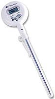 Instrumento digital portátil, tipo vareta, a prova de água, LCD de 3 1/2 dígitos, resolução de 0,1°C ou 0,1°F, precisão básica de 3°C, registro de máximo e mínimo. Realiza medida de temperatura na faixa de -10°C a 200°C ou 14°F a 392°F.