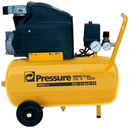 Modelo: MOTO PRESS 8,2 Deslocamento Pés³/Min 6 Teórico Litros/Min 170 Pressão Máxima Libras/Pol² 116 Bar 8 Potência Motor CV 2 Nº Polos 2 Capacidade Litro 24 Peso Líquido 25 Dimensões (m/m) Largura 240 Altura 570 Comprimento 600